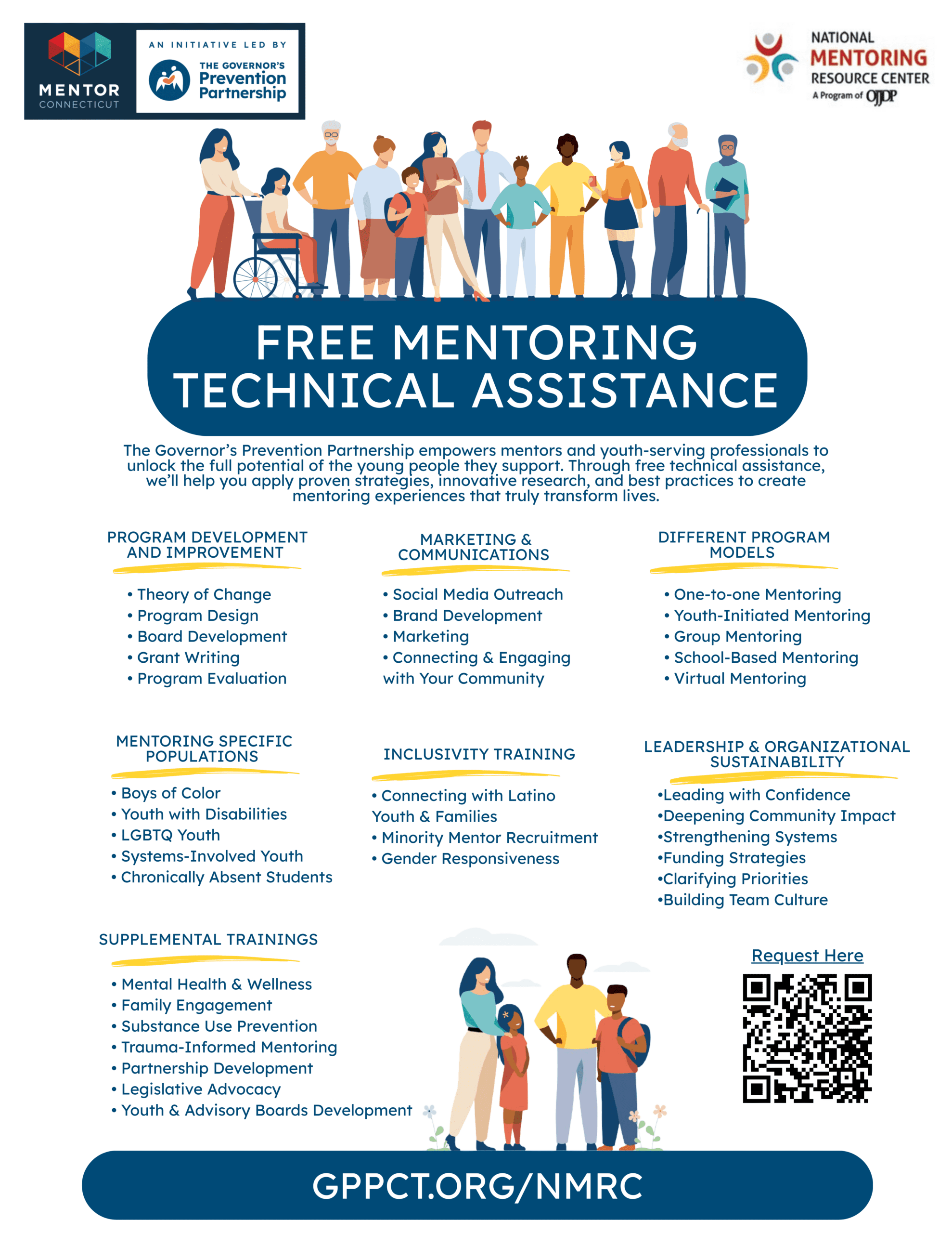 The Governor’s Prevention Partnership provides mentoring programs and youth development professionals with the knowledge and resources needed to help young people thrive. By collaborating with The Governor’s Prevention Partnership, you will learn how to harness mentoring best practices and cutting-edge research to create a vibrant mentoring program and facilitate transformational mentoring experiences.